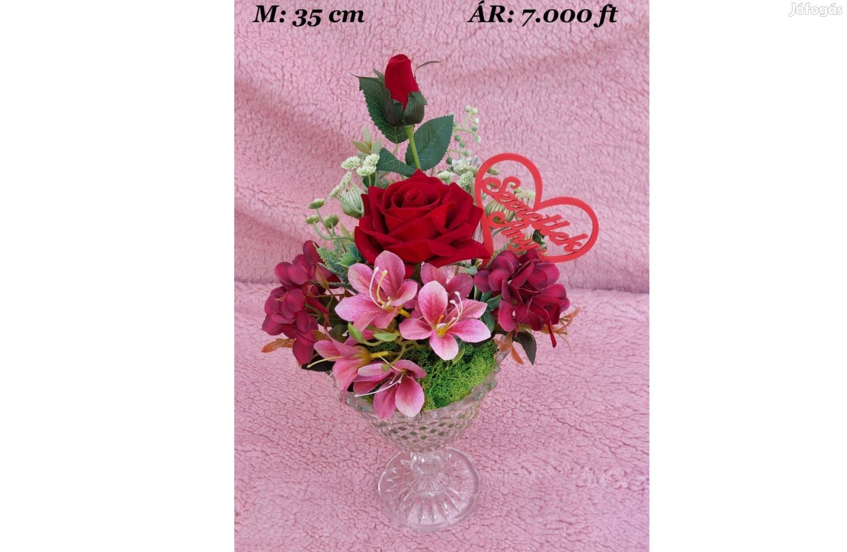 Bársony rózsa - Üvegkehelybe díszítve- "Szeretlek Anya"