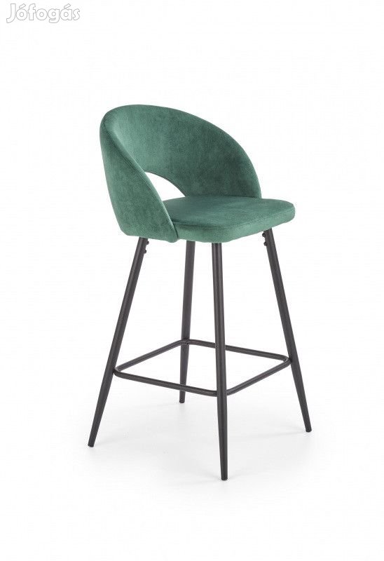 A bárszék kárpitjának színe sötétzöld, a lábak illetve a váz színe fekete.
