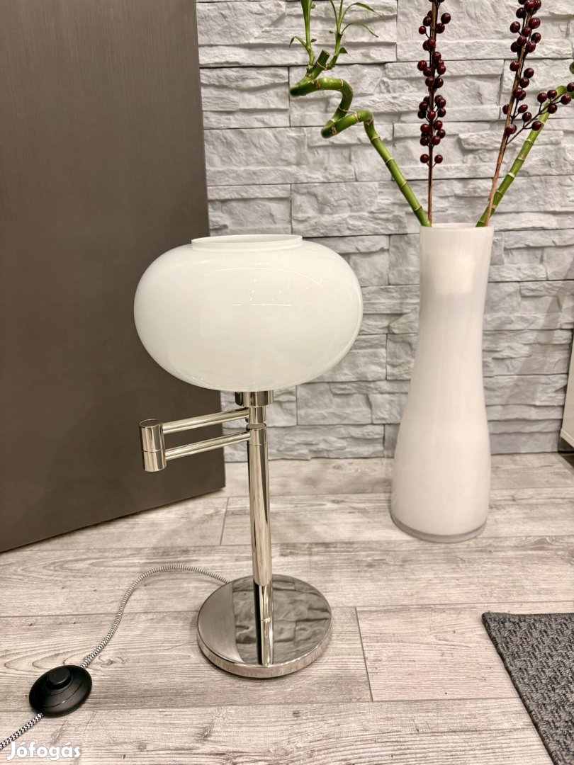 Eredeti Baulmann Leuchten krómozott lámpatest, nagyméretű opál üveg búrával társítva.