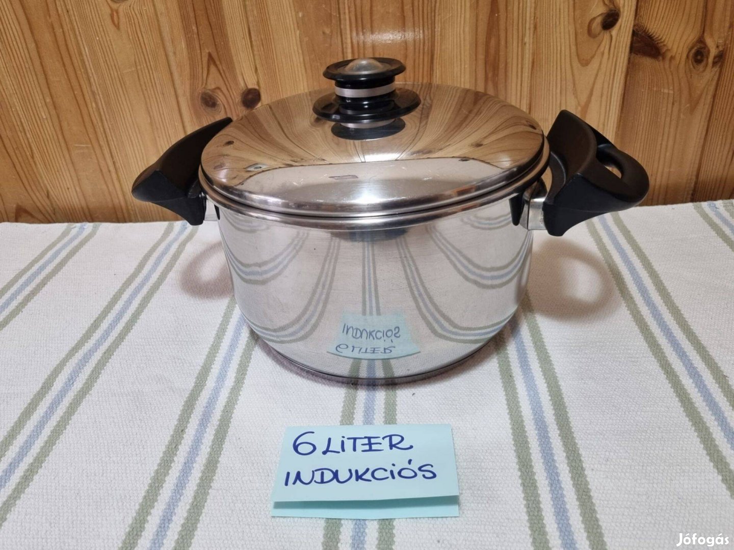 Eladó képeken látható, 24 centiméter belső átmérőjű, 6 literes fazék. Az edény indukciós főzőlapon is használható, fedővel kerül meghirdetésre.