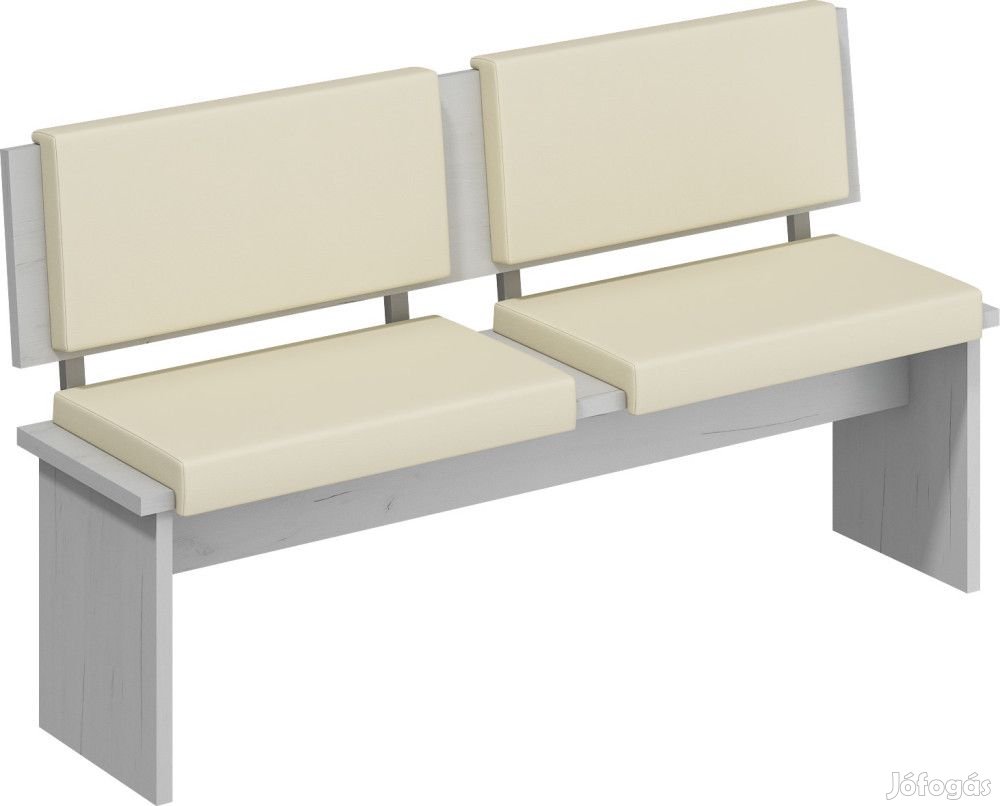 Kétszemélyes háttámlás pad párnákkal fehér tölgy színben, bézs huzattal. További információkért kattintson ide: