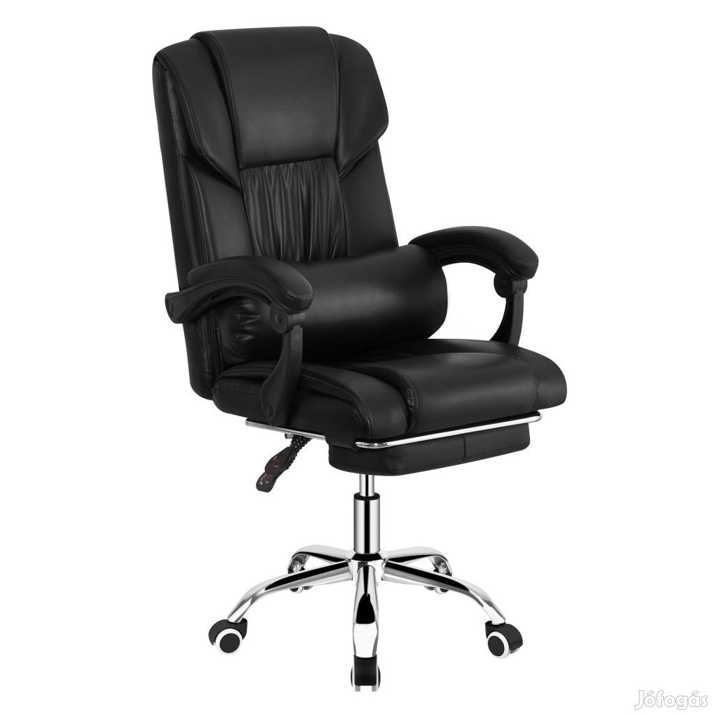 Fekete textilbőrrel kárpitozott, mely megadja fotelunknak a megfelelő rezgést. A fémből készült váz kerekekkel végződik, melyek vigyáznak parkettünk és fa padlónk épségére.
