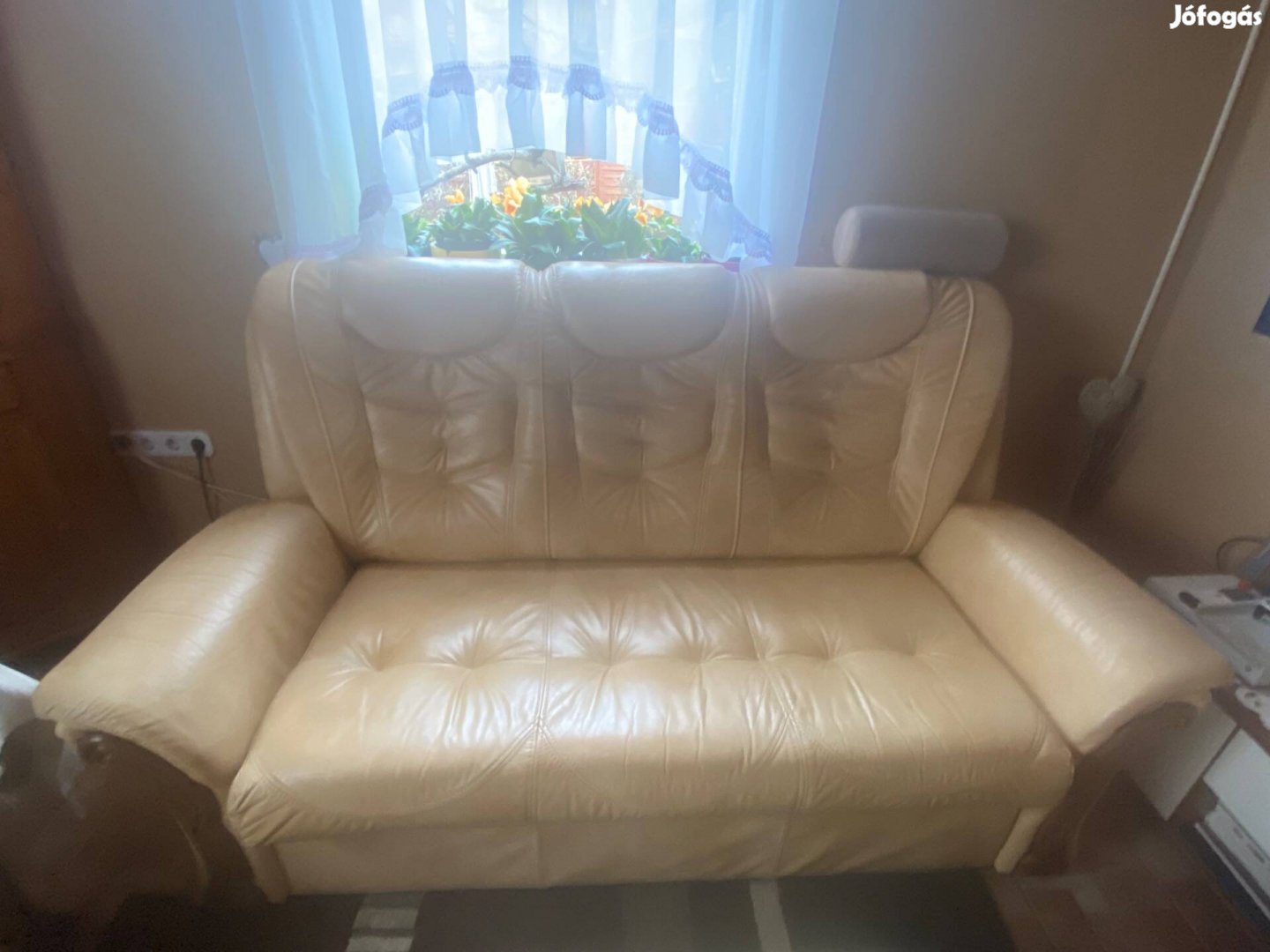 Ágyazható bőrkanapé jó állapotban,a 2 fotel újításra szorul.