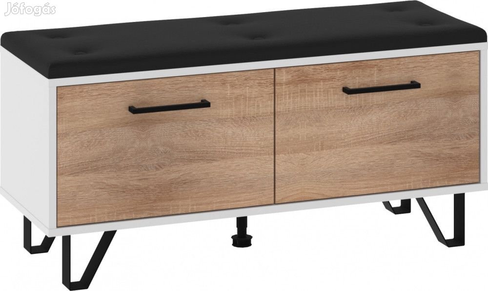 Cipősszekrény és pad egyben, 2 lenyíló ajtós cipőtartóval és szivacs párnával, fehér és világos sonoma tölgy színben. További információkért kattintson ide: