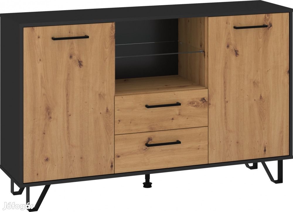 Komód 2 ajtóval, 2 fiókkal, polcokkal és nyitott üvegpolccal, fekete és artisan tölgy színben. További információkért kattintson ide: