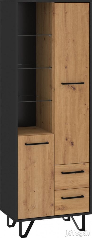 Könyvespolc 2 ajtóval, 2 fiókkal, nyitott polcokkal és üvegpolcokkal, fekete és artisan tölgy színben. További információkért kattintson ide: