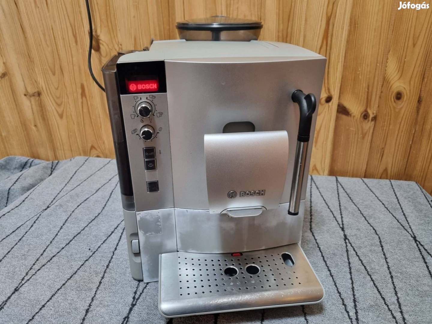 Eladó képeken látható, hibás állapotú, Bosch kávégép. Vizet nem ad, kávét nem főz, a víztartály sérült, fedele letört.