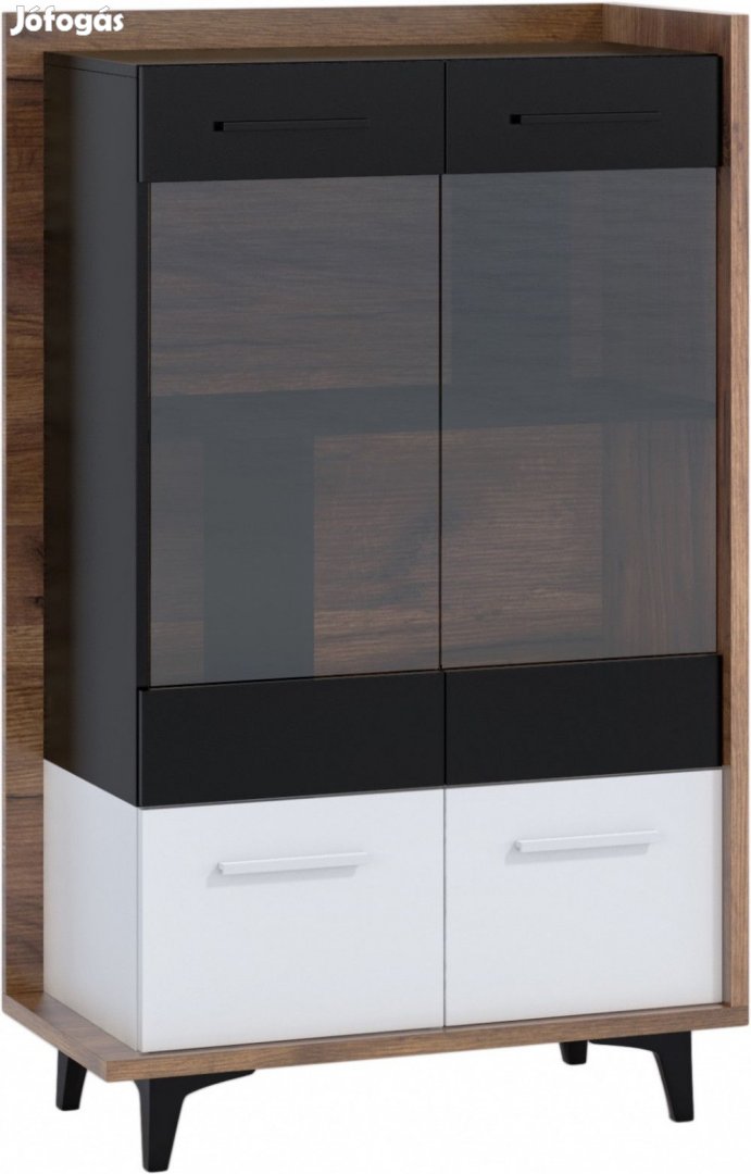 Felül 2-ajtós üveges vitrines, alul 2-ajtós szekrény polcokkal, tobacco tölgy, fehér és fekete színben. További információkért kattintson ide: