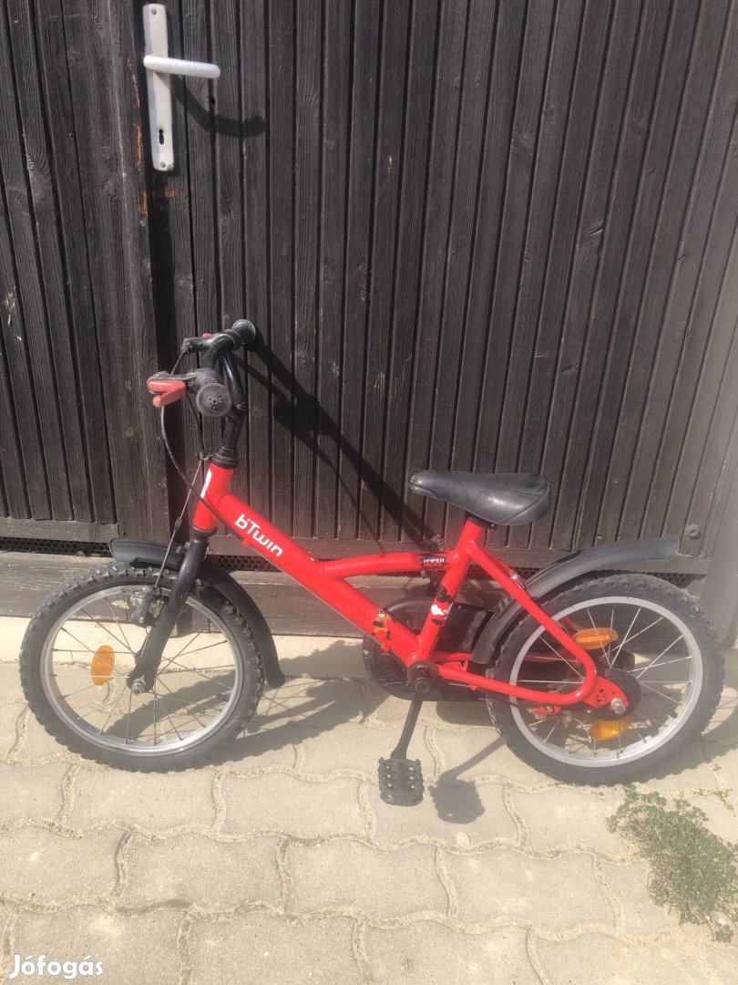 Eladó a képeken látható Btwin márkájú 16"-os gyerekbicikli. Első kerékbelső lyukas, gumik öregek. Fékek jók, egy általános karbantartás ráfér.