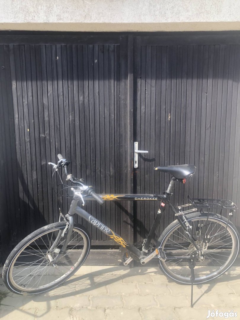 Eladó a képeken látható 26"-os, 3x6 sebességes foglalkozós mountain bike, kerékpár. Gumik szinte újak, fékek rendben. Ülése szakadt, váltóját állítani kell, általános karbantartást igényel. Vázméret L-es. Támasztóval, és kerékpár táskával, hátsó lámpával.