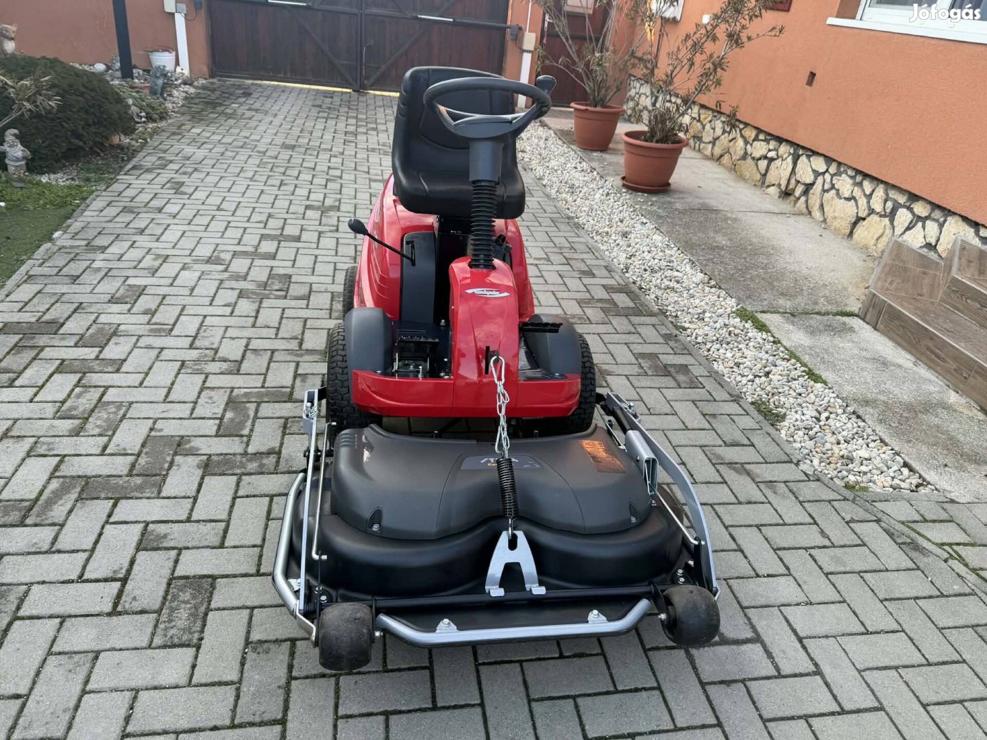 Eladó a képeken látható nagyon szép és jó állapotban levő frontkaszás hátsókerék kormányzású fűnyírótraktor. 15,5 LE Briggs motorral ami hidegen- melegen tökéletesen indul és teljesen füstmentes. Fokozatmentes hidro váltóval ami csendes és erős. 95 cm vágásszelessegü kettőkéses kaszaházzal ami szépen csendben működik. Vágási magassaga több fokozatban állítható. A gép teljesen levan szervizelve. Költségmentesen azonnal munkára fogható. Az ár számlás de nem áfás.