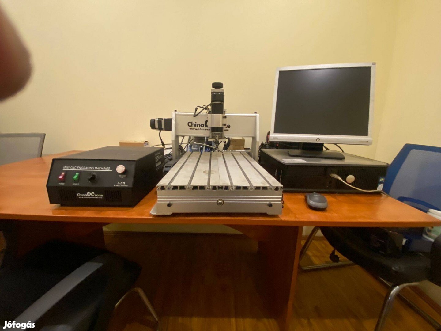 Eladó egy cnc maró gravírozó gép. Asztal hossza 520mm szélessége 320mm maró motor távolsága az asztaltól 75mm. Négy tengelyes vezérlő, számítógép, monitor, billentyűzet, egér tartozék. Mach3 és grafikus tervező program a gépen magyar nyelven. A marógép oktató gépnek lett véve 4 éve, de a projekt nem jött össze ezért nem volt használva. Hibátlan állapotú.