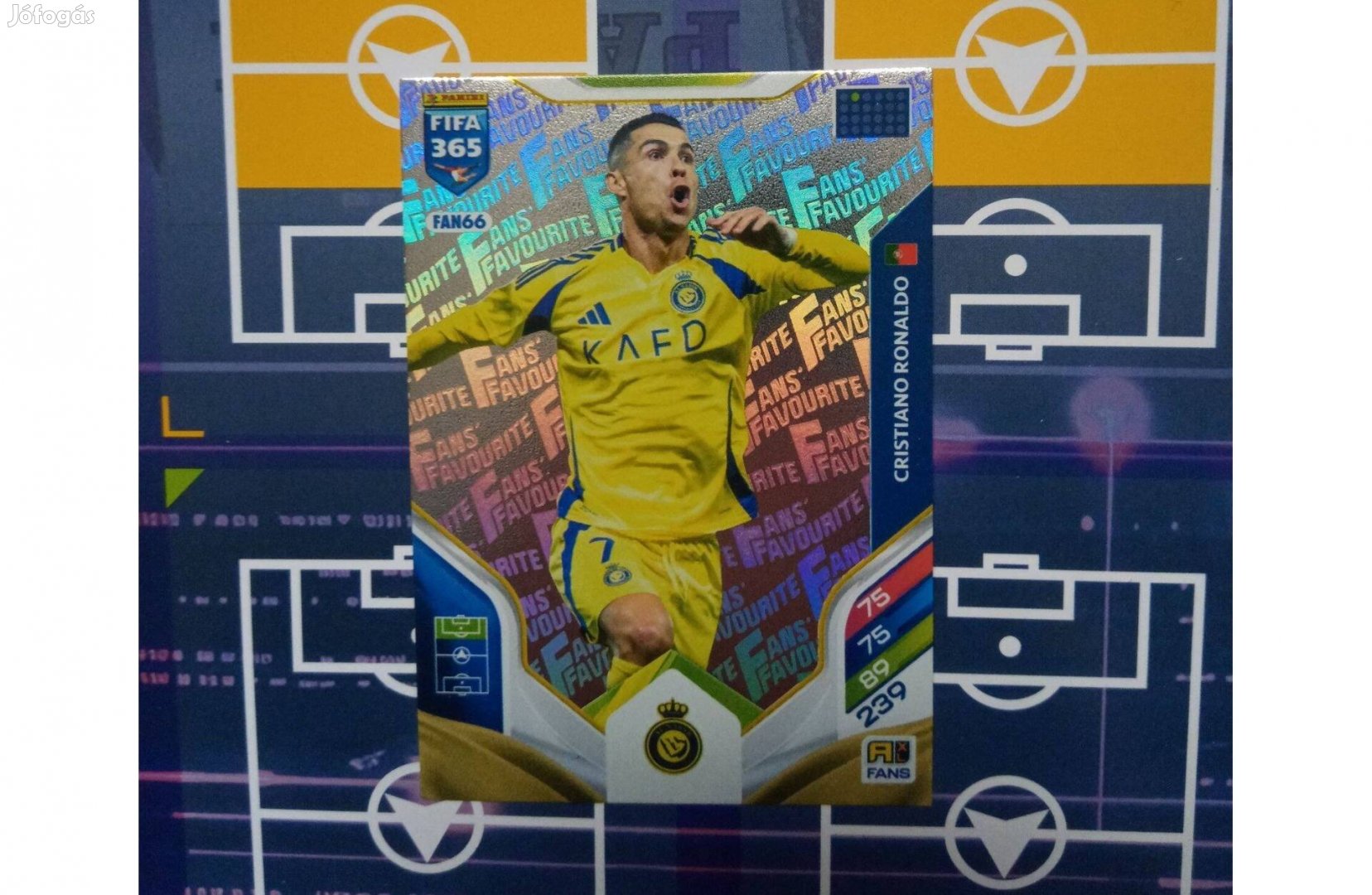 Eladó a képen látható Panini FIFA 365 Adrenalyn 2026 Cristiano Ronaldo (Al-Nassr FC) FAN66-s sorszámú Fans Favourite kártya.