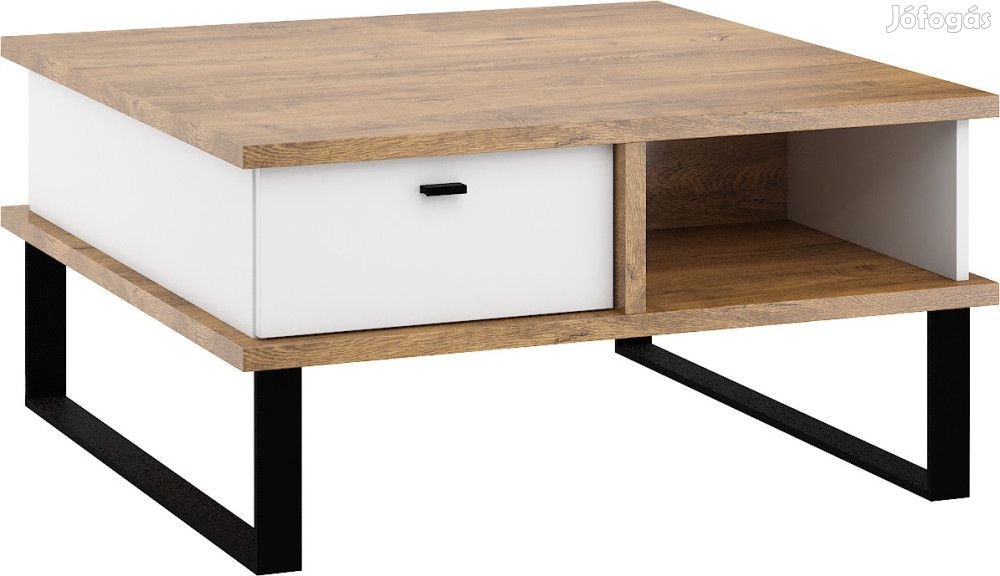 Dohányzóasztal 2 fiókkal polcokkal négyzet alakú szögletes asztallappal, burgundy tölgy és fehér színben. További információkért kattintson ide: