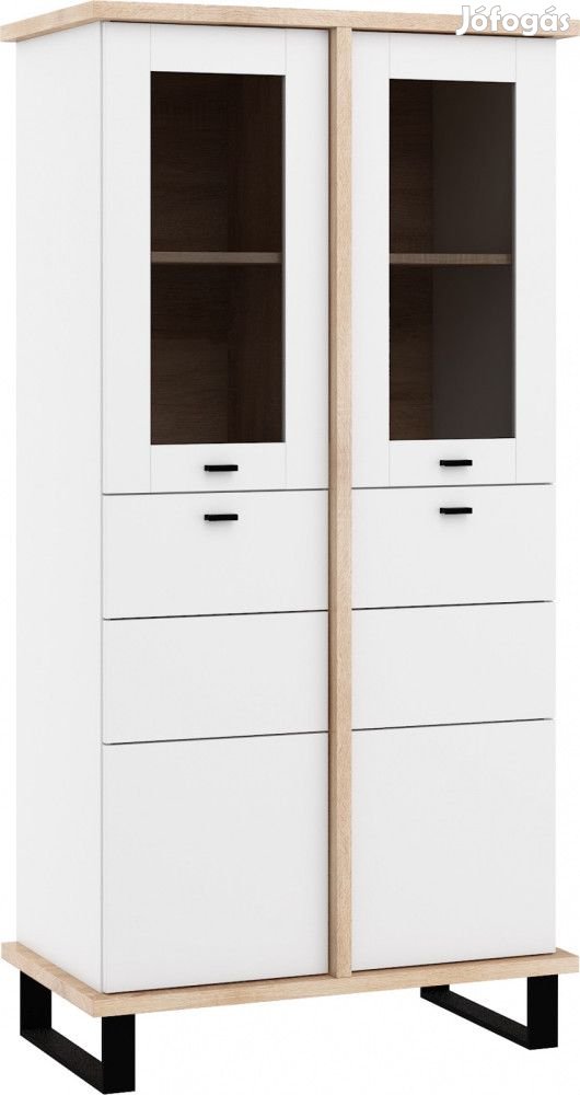 Felül 2-ajtós üveges vitrines, alul 2-ajtós szekrény polcokkal, világos sonoma tölgy és fehér színben. További információkért kattintson ide: