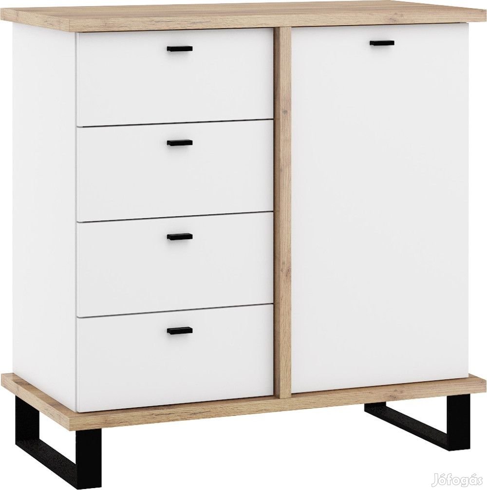 Komód 1 ajtóval, 4 fiókkal, az ajtó mögött polcokkal, arany tölgy és fehér színben. További információkért kattintson ide: