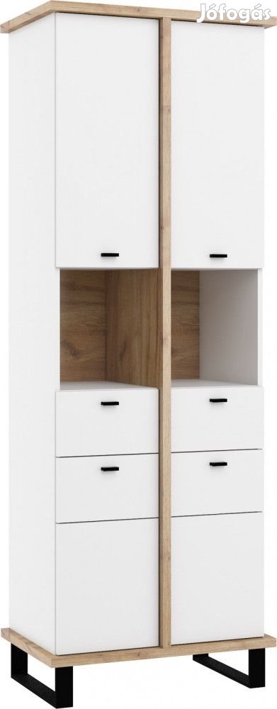 Könyvespolc 4 ajtóval, 2 fiókkal és nyitott polcokkal, arany tölgy és fehér színben. További információkért kattintson ide:
