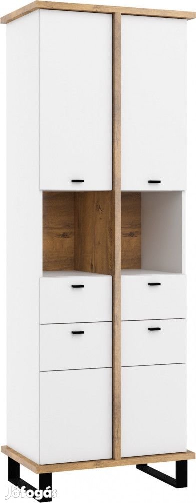 Könyvespolc 4 ajtóval, 2 fiókkal és nyitott polcokkal, burgundy tölgy és fehér színben. További információkért kattintson ide: