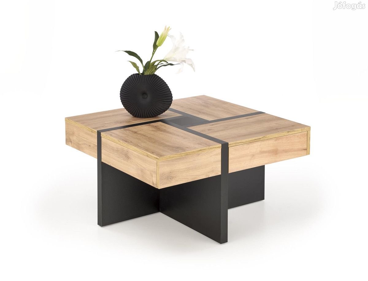Az asztal 80 cm széles, 80 cm mély és 47 cm magas. A craft tölgy és a fekete árnyalataiban pompázó sötét színű kialakítás eleganciát és modernitást kölcsönöz a belső térnek. Az asztal négyzet alakja ideális a szoba közepére vagy a kanapé mellé.
