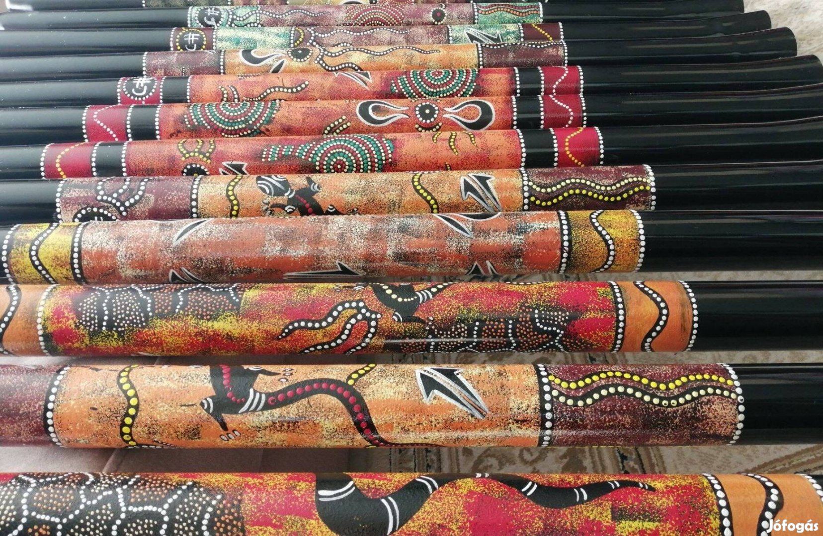 A csövek egységesen C# hangolásúak és 127 cm hosszúak. Használva voltak, a használat nyomai kisebb-nagyobb mértékben látszanak rajtuk. Akad köztük kis hibás vagy javított darab is, ezek esetében kedvezményt tudok adni.