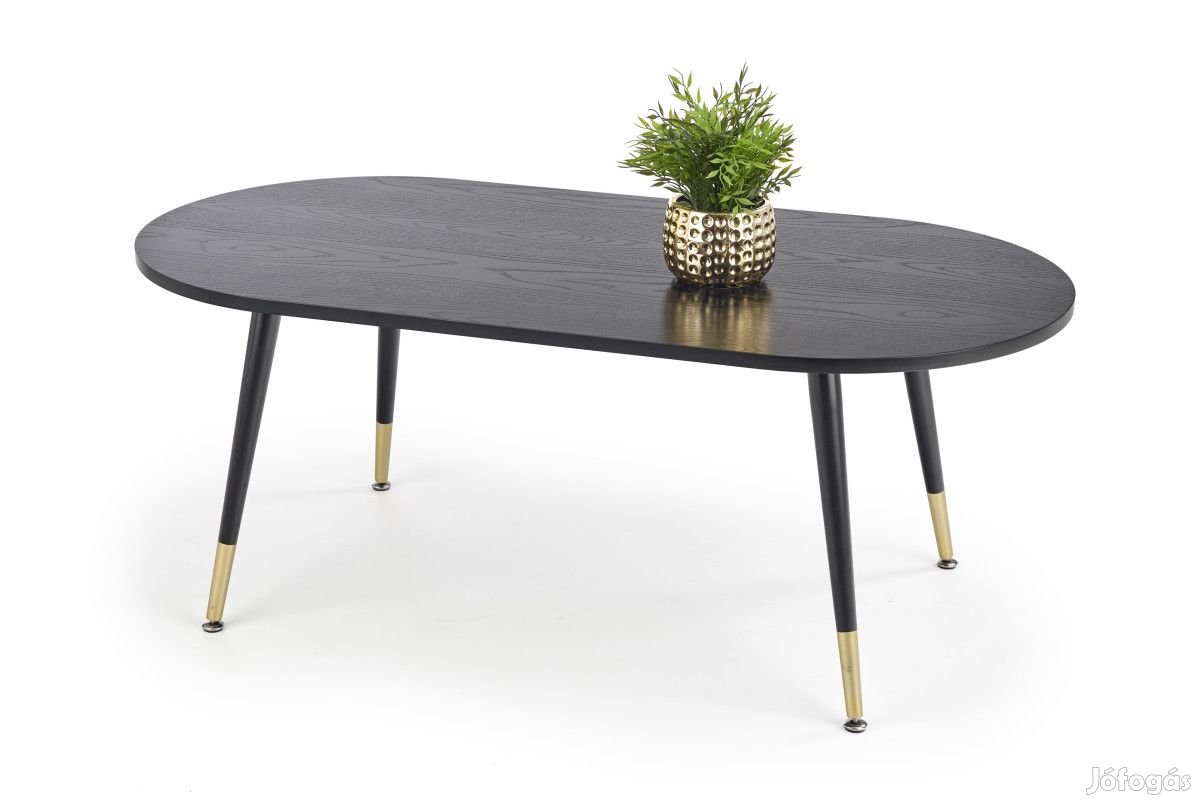 Modern stílusú, elegáns megjelenésű, ovális alakú fa asztallapos dohányzóasztal.