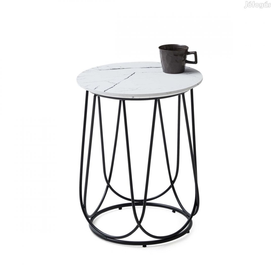 A dohányzóasztal kör alakú, laminált MDF-ből és porrétegű acélból készült. Asztallapjának színe fehér márvány, a váz színe fekete.