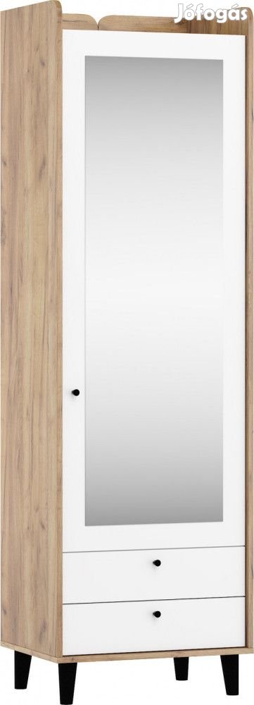 Gardróbszekrény 1 ajtóval, 2 fiókkal, felül polccal és vállfatartóval, valamint tükörrel, arany tölgy és fényes fehér színben. További információkért kattintson ide:
