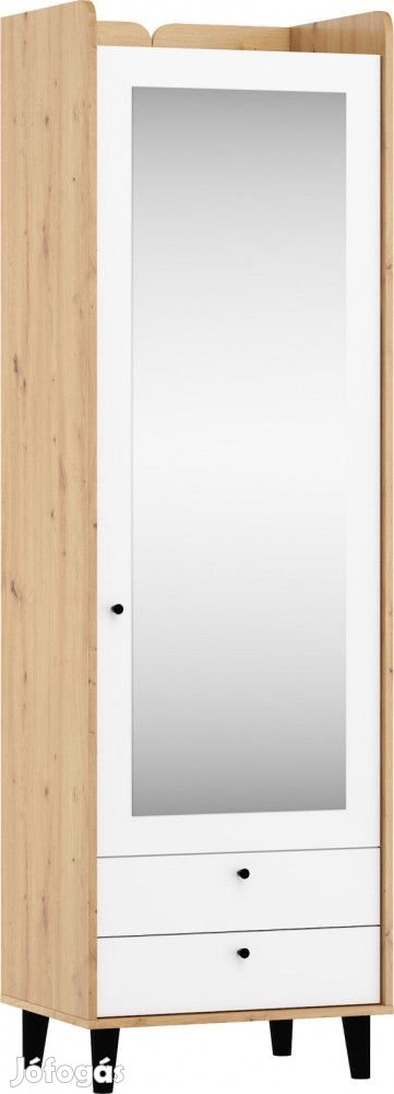 Gardróbszekrény 1 ajtóval, 2 fiókkal, felül polccal és vállfatartóval, valamint tükörrel, artisan tölgy és fényes fehér színben. További információkért kattintson ide: