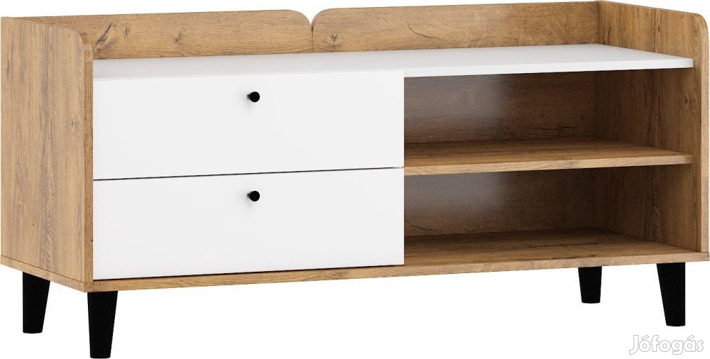 TV-állvány 2 fiókkal és nyitott polcokkal, burgundy tölgy és fényes fehér színben. További információkért kattintson ide:
