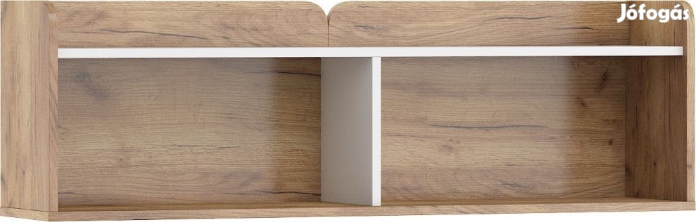 Falra szerelhető polc nyitott polcokkal, arany tölgy és fehér színben. További információkért kattintson ide: