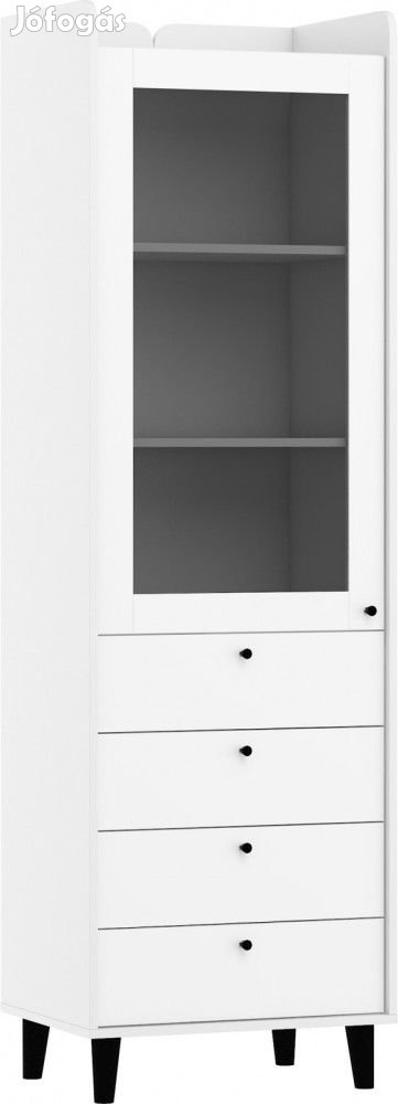 Felül 1-ajtós üveges vitrines, alul 4-fiókos szekrény polcokkal, fehér és fényes fehér színben. További információkért kattintson ide: