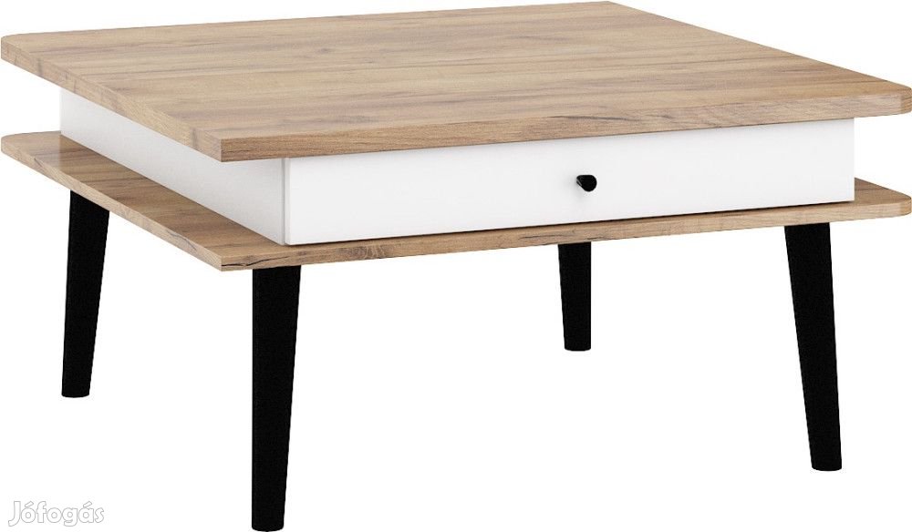 Dohányzóasztal 2 fiókkal, és négyzet alakú szögletes asztallappal, arany tölgy és fényes fehér színben. További információkért kattintson ide:
