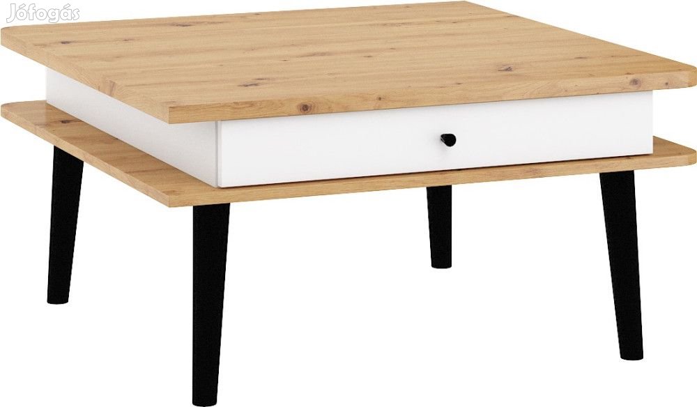 Dohányzóasztal 2 fiókkal, és négyzet alakú szögletes asztallappal, artisan tölgy és fényes fehér színben. További információkért kattintson ide: