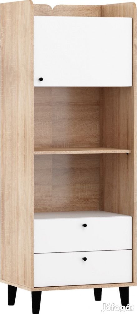 Könyvespolc 1 ajtóval, 2 fiókkal és nyitott polcokkal, világos sonoma tölgy és fényes fehér színben. További információkért kattintson ide: