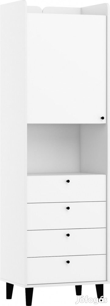 Könyvespolc 1 ajtóval, 4 fiókkal, nyitott polccal, az ajtó mögött polccal, fehér és fényes fehér színben. További információkért kattintson ide: