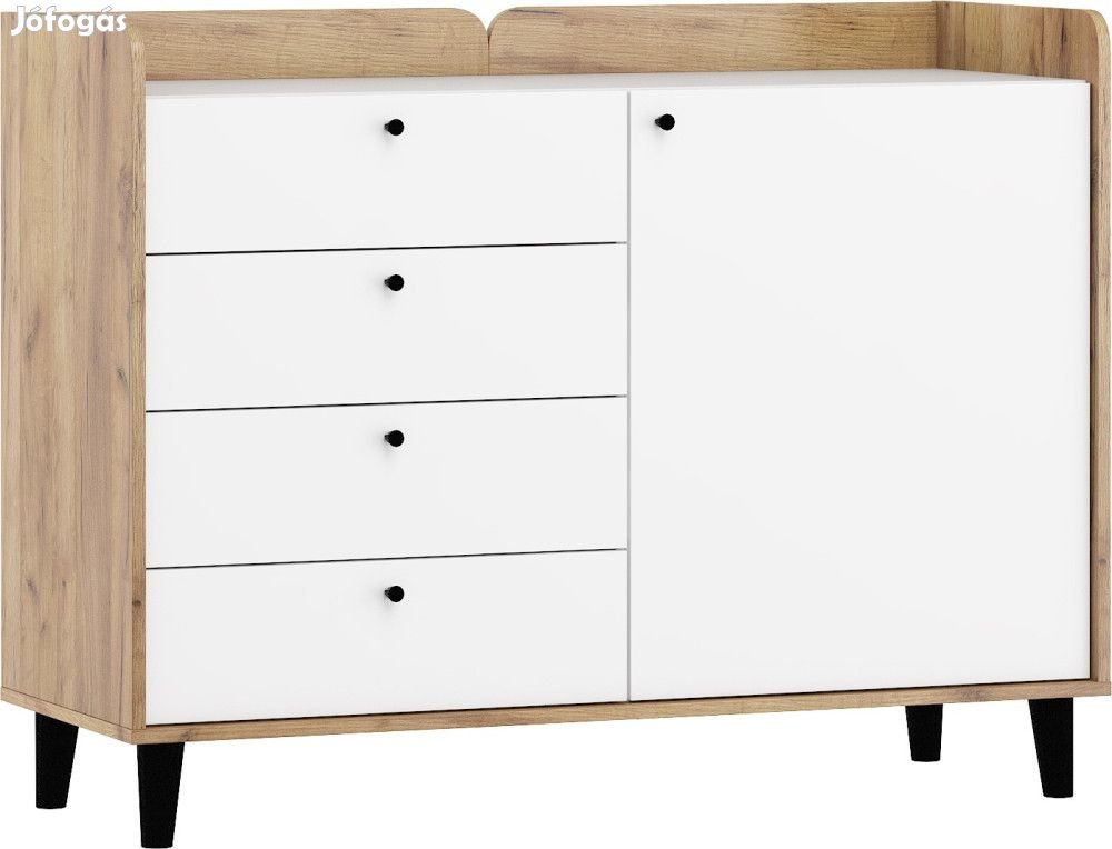 Komód 1 ajtóval és 4 fiókkal, az ajtó mögött polcokkal, arany tölgy és fényes fehér színben. További információkért kattintson ide: