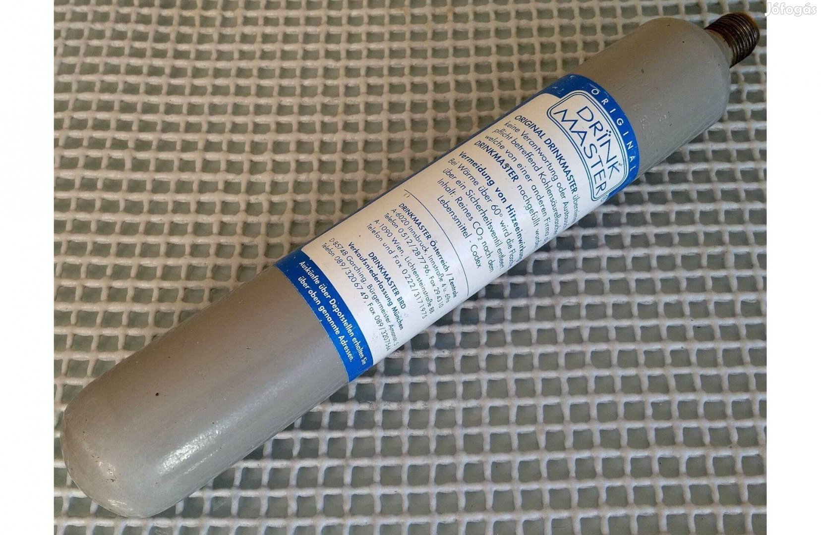 Eredeti Drinkmaster CO2 310g szén-dioxid palack, teli, Aquabar, Drinkmaster, Multifit, Soda-Club egyes régebbi típusai, Soda-Maxx, Soda One, Wasser Maxx, stb. szódagépekhez