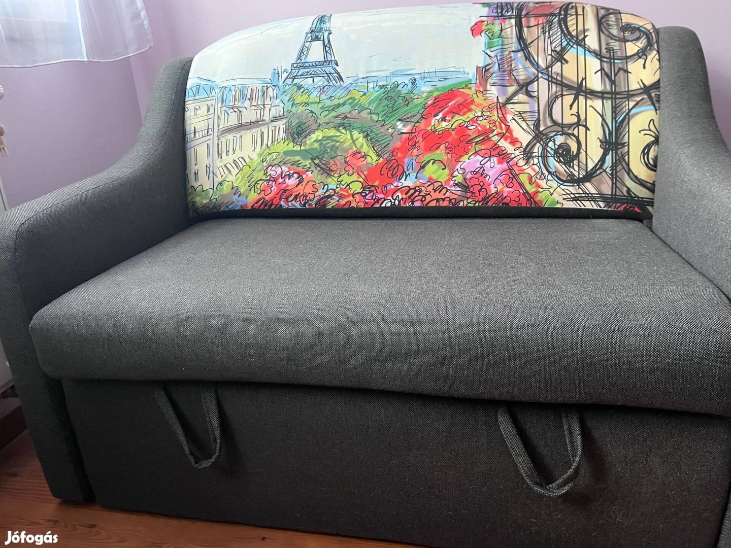 Kinyitható kanapé, különleges Eiffel-torony designnal. Keveset használt, nagyon jó állapotban van, de néhány tisztítható folt van rajta, ezeket fotóztam. Balatonalmádiban van.