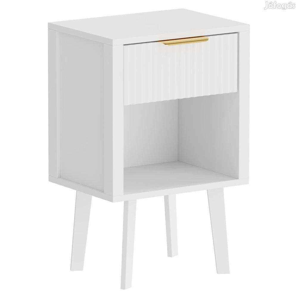 Anyag: laminált DTDSzín: fehérMéretek (SzxMéxMa): 39x29x60,5 cmTeherbírás: 10 kgNyitott tárhelyA nyitott tárolórekesz magassága: 21,5 cmA nyitott tárolórekesz teherbírása: 10 kgFiókFiók teherbírása: 5 kgMűanyag fogantyúkFogantyúk színe: aranyLábakonLábak magassága: 22 cmModern stílusJavasoljuk a falhoz rögzíteniSzétszerelve szállítva További információkért kattintson ide: