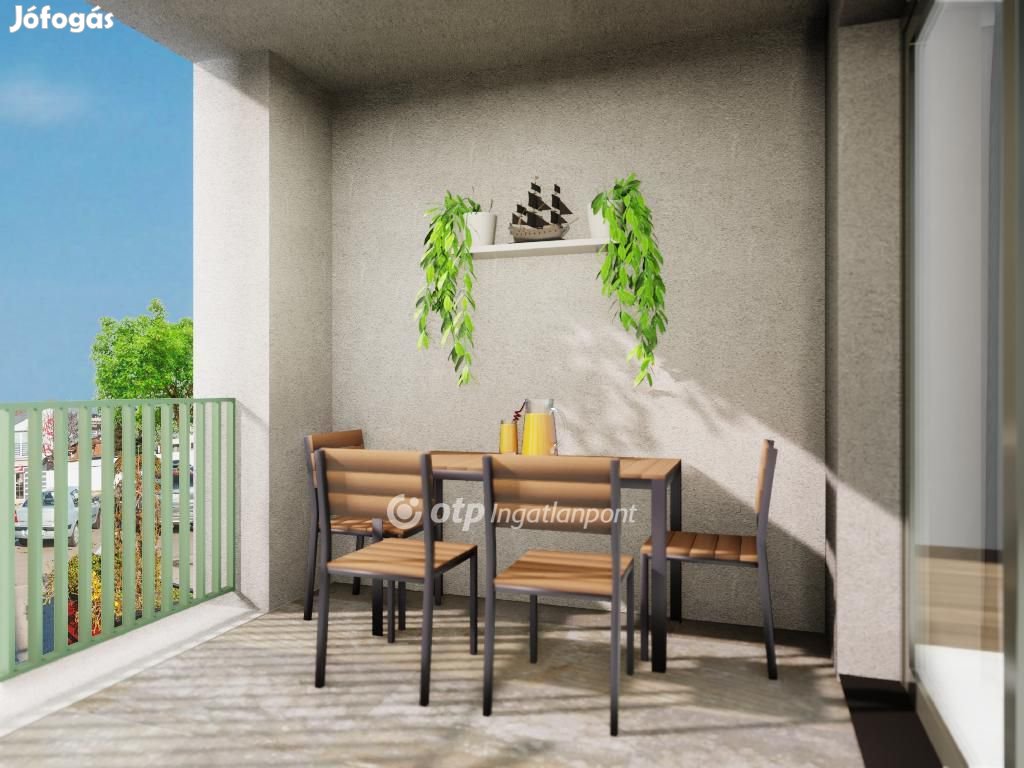 Ez a 56,25 m-es II. emeleti lakás 8,64 m-es terasszal rendelkezik, tökéletesen elosztott terekkel: