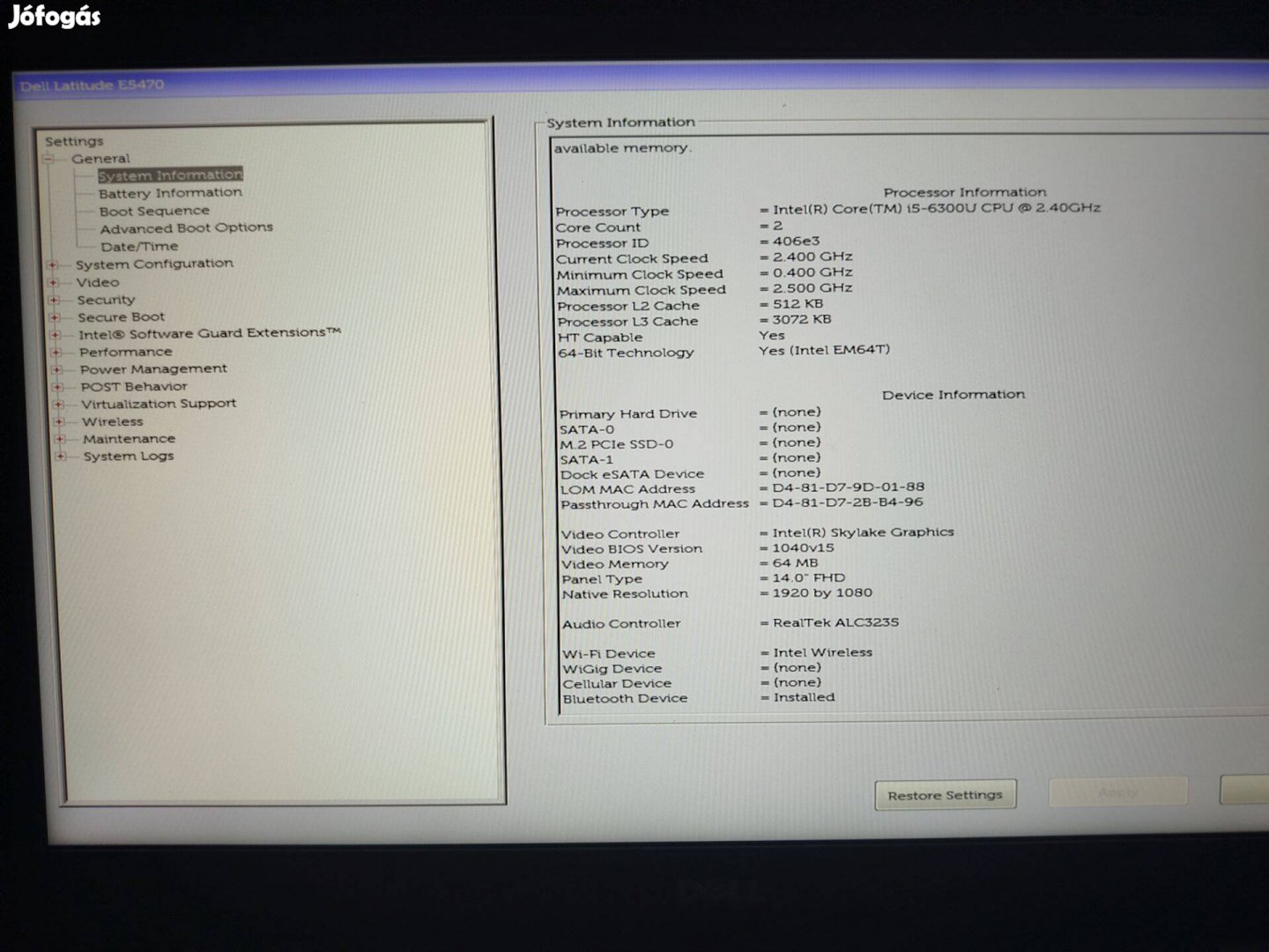 Eladásra kínálok egy Dell Latitude 5470 üzleti kategóriás laptopot.