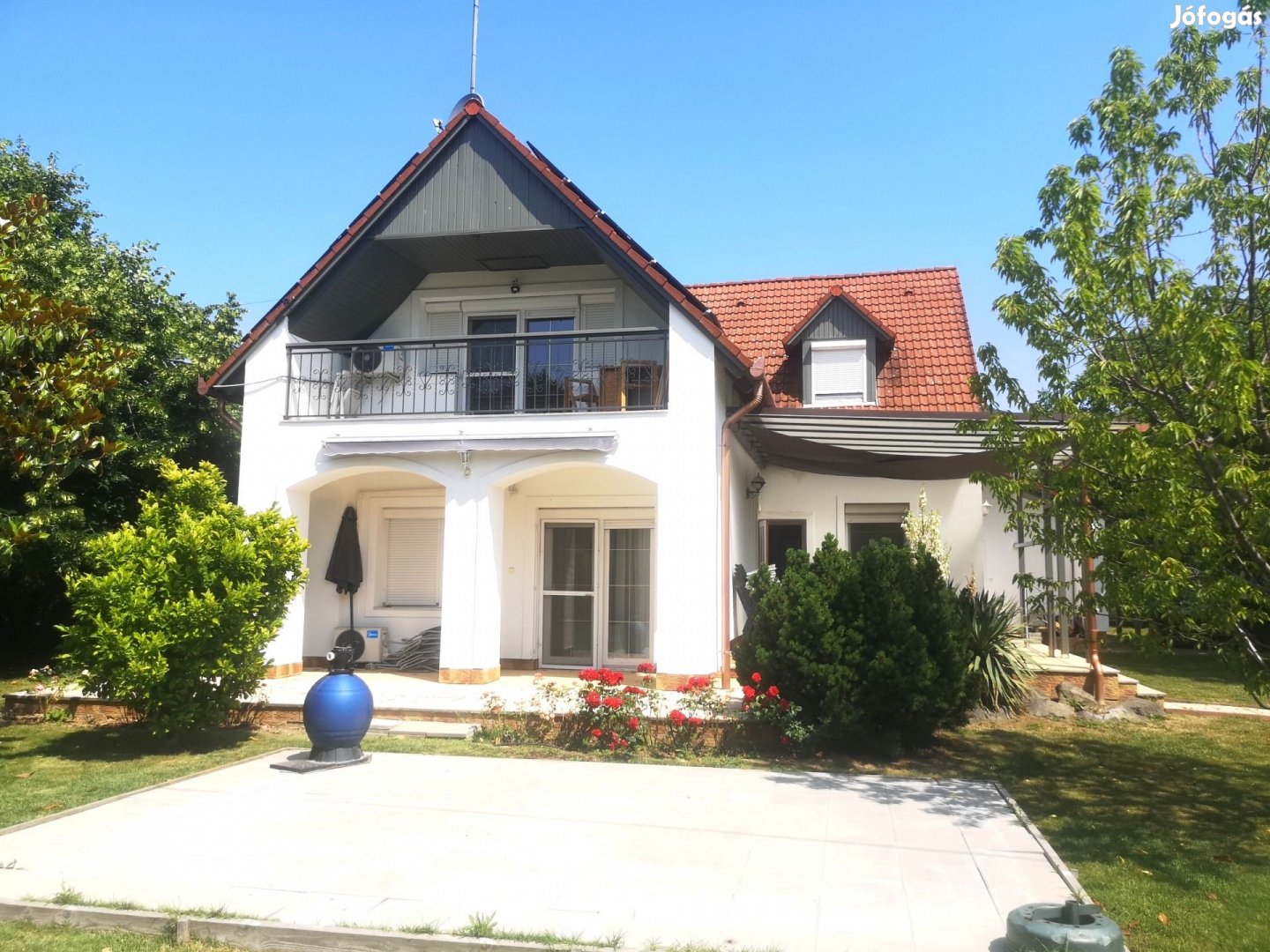 Veszprém vármegye, Badacsonytomaj, 238m2-es családi ház eladó. A méltán közkedvelt Balaton-parti település badacsonyi részén található két szintes ingatlan fogadószintjén a garázson kívül nappali terasszal, 2 hálószoba, konyha, étkező, kamra, fürdőszoba, illemhelyiség, mosókonyha, tároló, wellness részleg szaunával, sószobával fürdőszobával, fedett, és egy részben fedett terasz, valamint közlekedő, míg az emeleten további 4 db hálószoba, erkélyes, panorámás nappali, két fürdőszoba és közlekedő került kialakításra. A 2010-ben teljesen felújított, és azóta is rendszeresen karbantartott családi ház melegéről gázkazán, kandalló és 8 db hűtő-fűtő klíma gondoskodik. A napelemes ingatlan riasztóval, távfelügyelettel, és 3X40A villamoshálózattal is ellátott. Az 1780m2-es parkosított telken bográcsozó, grillező, tároló, jakuzzi, öntözőrendszer saját kútról és 3-4 gépjármű parkolására is alkalmas terület szolgálja az tulajdonosok kényelmét. A befektetésnek, vagy több generáció együttélésének egyaránt alkalmas tehermentes, bútorozott családi ház jelenleg jól prosperáló magánszálláshelyként működik. További információkért forduljon hozzám bizalommal.