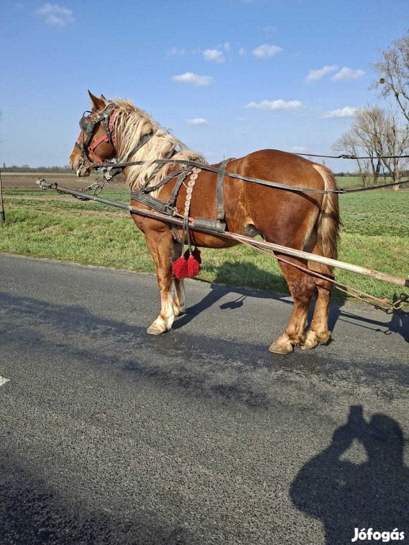 Eladó 2,5 éves hidegvérű x sodrott kender sárga mén. Kiváló egyes-kettes kocsis forgalom biztos semmitől nem fél. Szelíd, nyugodt. Magassága 167cm szalaggal mérve.