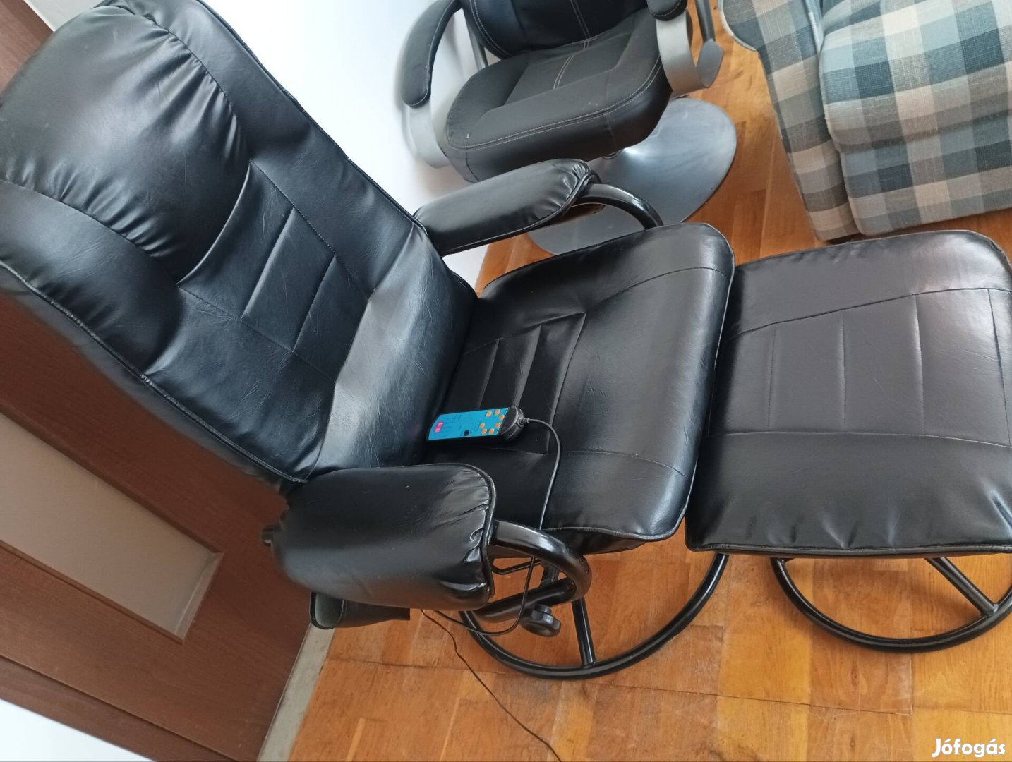 Eladó masszázsfotel több fungcióban maszíroz dönthető háttámla és lábtartós.