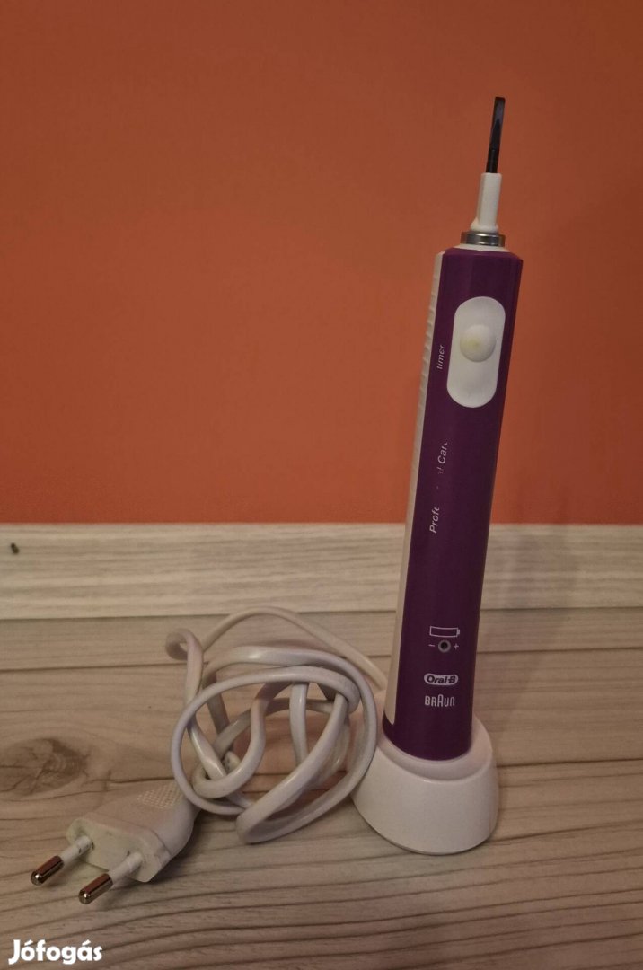 Braun Oral-B Pro 600 Professional Care elektromos fogkefe lila színben, fej nélkül, 2 perces jelzéssel, töltés jelzéssel, töltőjével együtt szép állapotban és jó működéssel eladó!