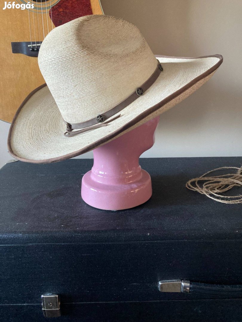 Kiváló minőségű női western kalap, farmra, versenyre egyaránt. S/M méret, kérésre mérem tetszés szerint. Tisztán tartott, szép állapot, bőr díszítésen a veretezés hiányos.