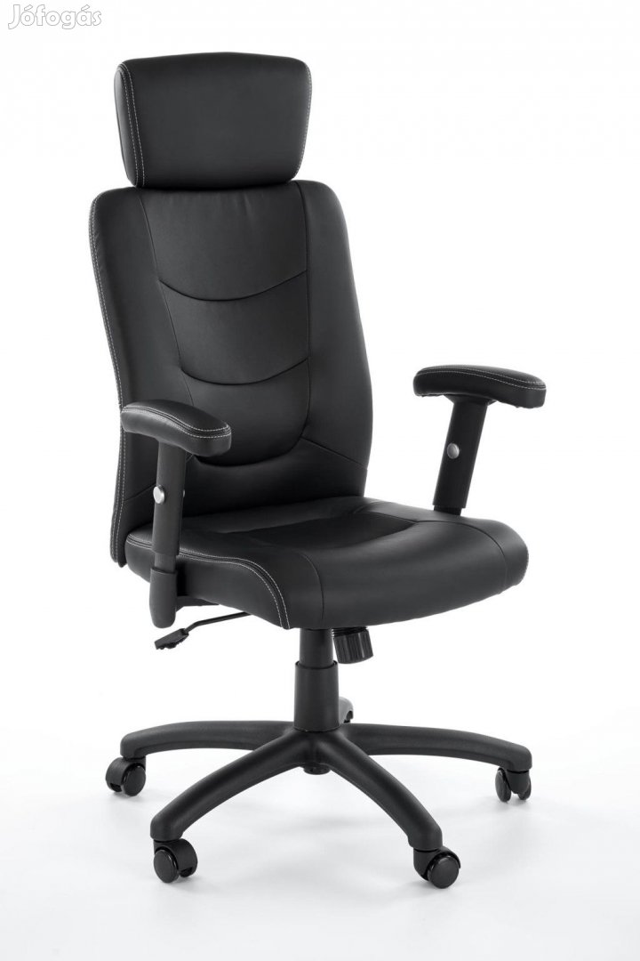 Minőségi vezetői forgószék, fekete színváltozatban, textilbőr kárpitozással.