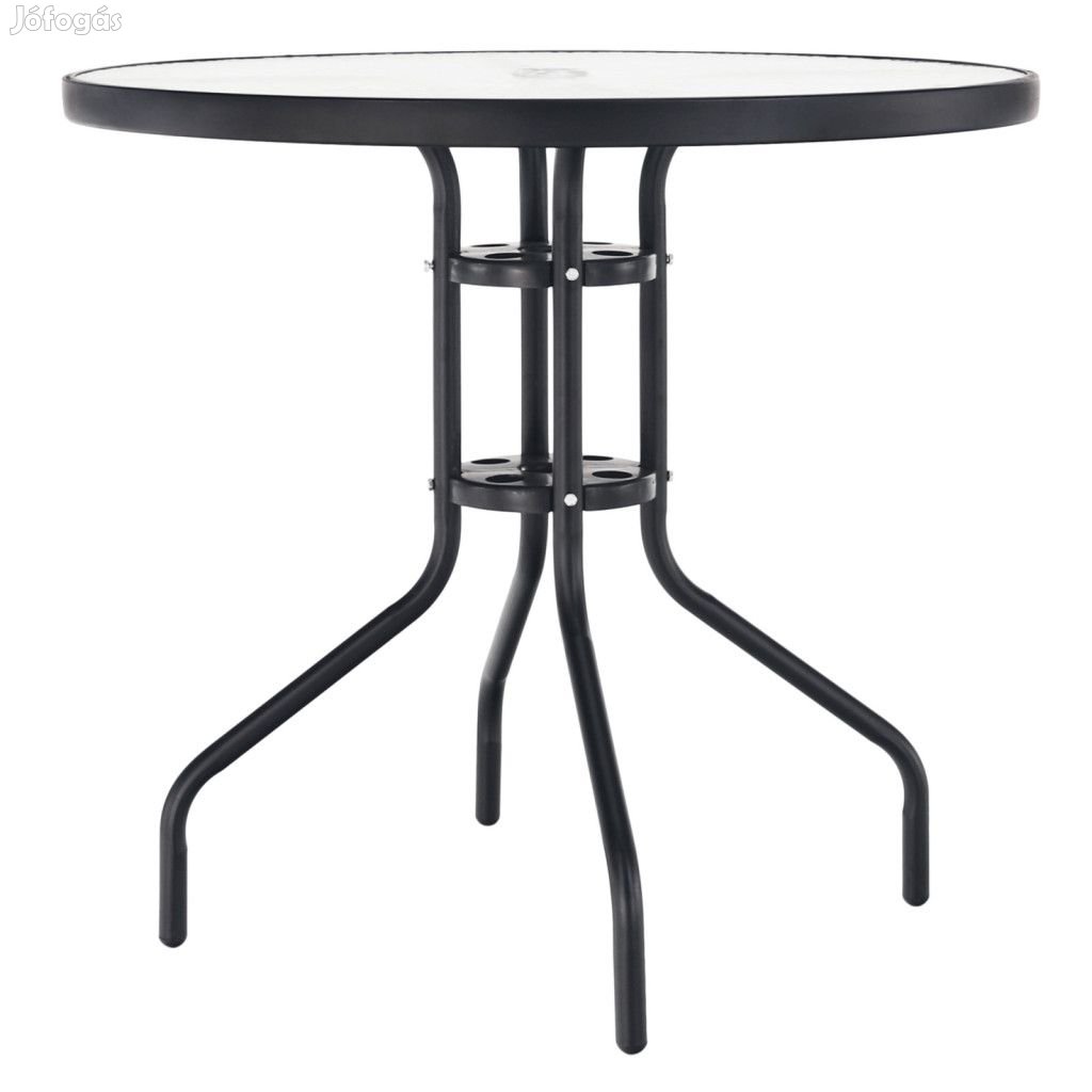 Étkezőasztal kertibútorhoz, BORGEN 2 Anyag: edzett üveg/acél Színe: fekete Méretek (SzéxMéxMa): 80x80x70 cm Lyukkal napernyő számára Kombinálható a LESTRA, DOREN, VARDA, BERGOLA székekkel. További információkért kattintson ide: