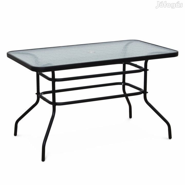 Étkezőasztal - alkalmas a DEMAT kerti szetthez Napernyő nyílással. Anyag: edzett üveg/fekete acél Méretek(SzxMéxMa): 120x70x70 cm Bontásban szállítva. További információkért kattintson ide:
