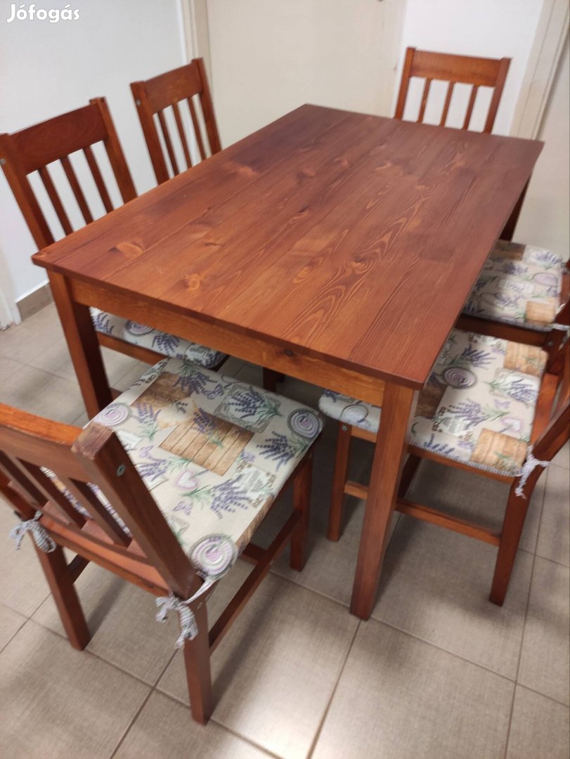 Étkezőasztal hat székkel eladó. Egy szék javításra szorul. Jysk-es szett jó állapotban.